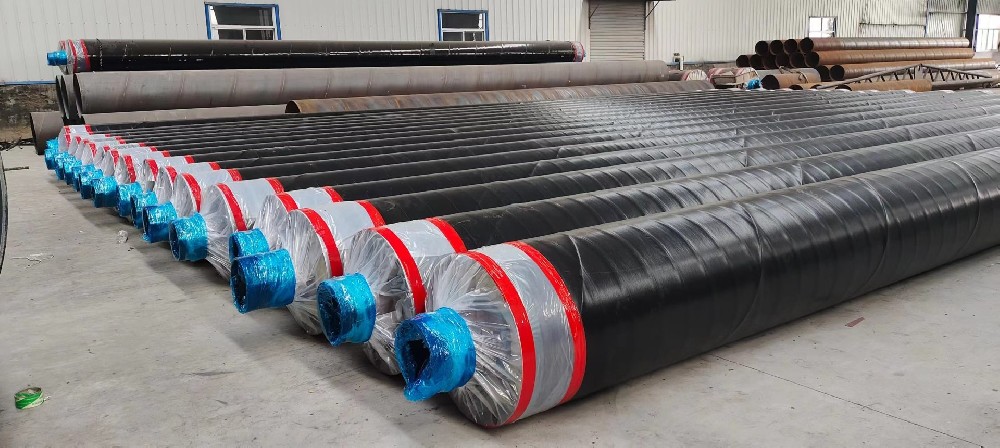 传统架空保温管的硬质保温材料在现场环境温度下进行安装,当工作管达到运行温度时硬质保温材料间出现缝隙增大的问题。此种新型预制保温管在工厂内安装硬质保温材料,便于安装时严格把控嵌缝工作。之后,将安装好硬质保温层的半成品管道直接放入聚氨酯泡沫的成型模具中,注入原料混合液进行发泡,硬质泡沫成型后脱模。此种制作方法可将缝隙完全包裹,使得外保温层和硬保温层成为一个整体,相比传统架空管的制作方法可减少缝隙间的漏热,大大提高整体保温性能。
